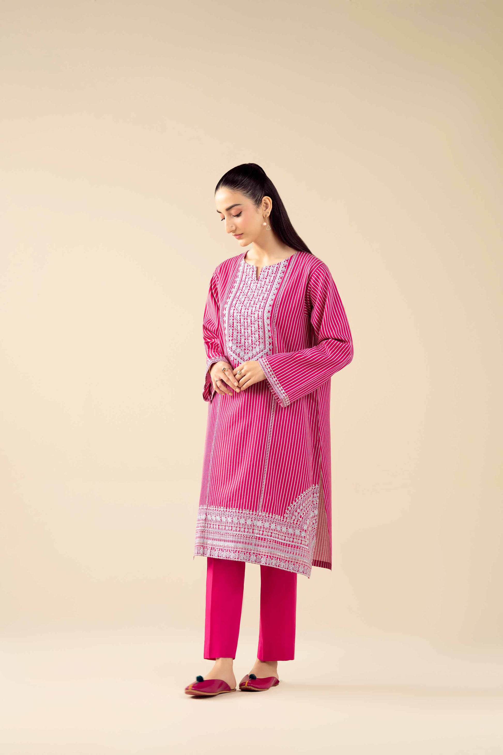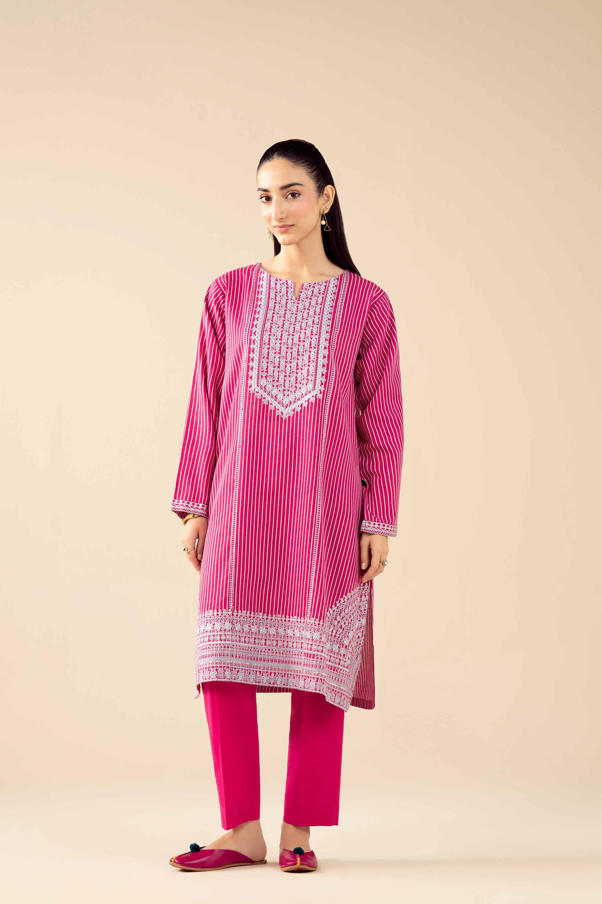Make a statement this season with this printed embroidered two-piece suit from the latest Pret Winter Collection, perfect for elegant occasions.